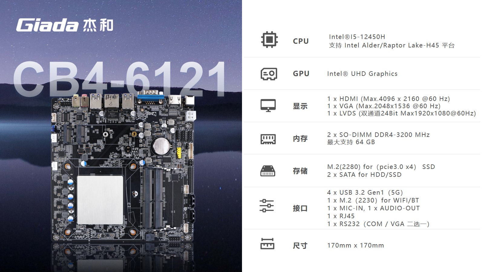 针对客户的稳定及显示需求,该主板配置1个HDMI接口 ,支持4k显示,同时配置1个LVDS,1个VGA接口满足其他显示需求。