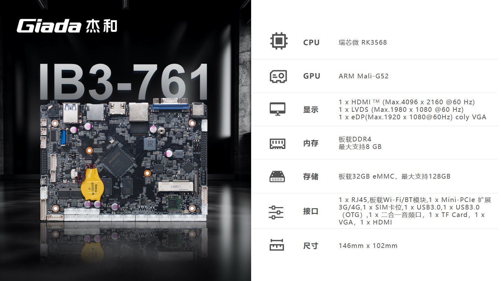 星空电竞工业级ARM主板IB3-761基于瑞芯微RK3568四核64位处理器开发。内置1TOPS算力的NPU,满足轻量级端侧AI计算应用。