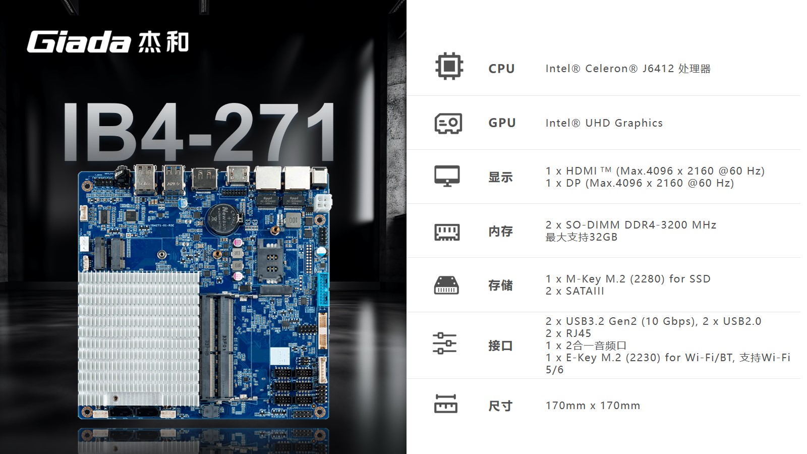 星空电竞IB4-271搭载的是Intel® Celeron® J6412处理器,Elkhart Lake平台在单线程性能上提升了1.7倍,在多线程性能方面提升了1.5倍,具有三个显示输出,包括DP、HDMI 和 LVDS 端口,能够为工业的多媒体应用、标牌显示和数字菜单提供足够的灵活性。