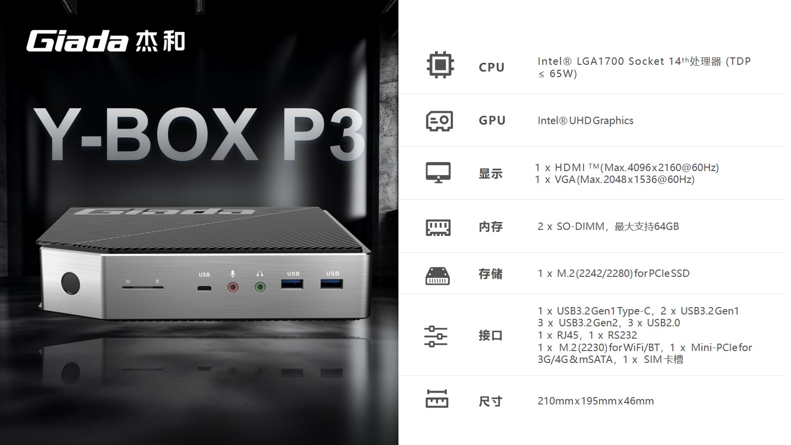 支持指纹解锁,支持type-c接口,支持PD协议的27W快充。星空电竞科技最新云终端Y-BOX P3采用Intel® LGA 1700 Socket CPU插槽设计,支持intel 12~14代酷睿系列处理器,配备i7-14700处理器,20核28线程,最大睿频频率为5.4GHz,处理器基础功耗 65W。采用双通道笔记本内存槽设计,最大支持容量可达64GB,最高支持DDR5-5600MHz频率,比 DDR4 至高标准数据速度 3200MT/S多传输 1.75 倍。