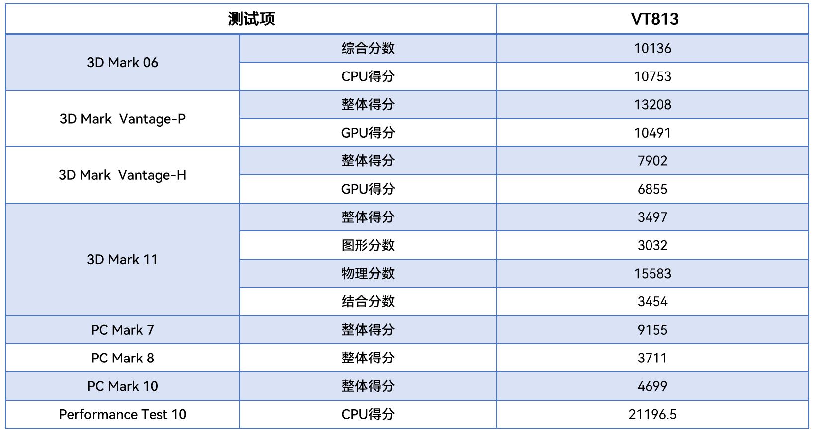 VT813综合得分3594.4,CPU得分21196.5,表明其在重度计算任务中表现卓越,无惧处理高负载任务。