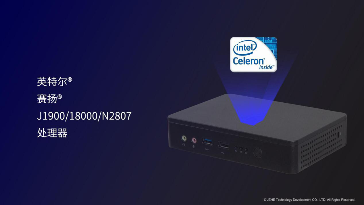 星空电竞科技VT20桌面云终端搭载了知名度很高赛扬®J1900处理器。在嵌入式应用中,赛扬®J1900处理器主打的高单核运算频率(2.4GHz单核睿频)和低功耗(10W),非常适合面向复杂的嵌入式场景。此外,星空电竞VT20适配了其他两款性能较低的BayTrail平台处理器,赛扬®N2807和赛扬®J1800,对于客户端性能要求相对较低的方案依然能够匹配需求。