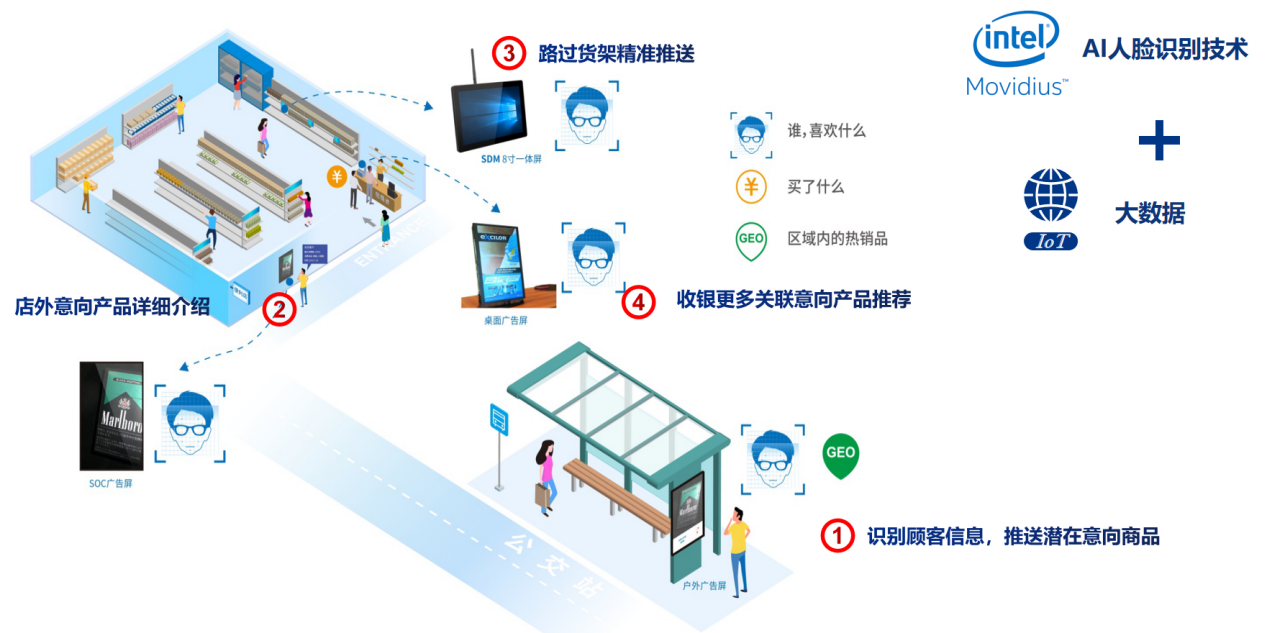 正如一开始提到的,基于GDSM智慧商显系统平台和星空电竞多屏拼接播放器的精准信息推送方案,整合了人工智能技术,在5G或有线网络的支持下,能够完成针对不同消费者推送不同消费者画像对应的产品。星空电竞拥有边缘计算能力的G系列多屏拼接播放器,适合作为AI人脸识别的硬件基础平台。通过训练完善的人工智能算法,针对不同的消费者标签,推送不同的广告信息。