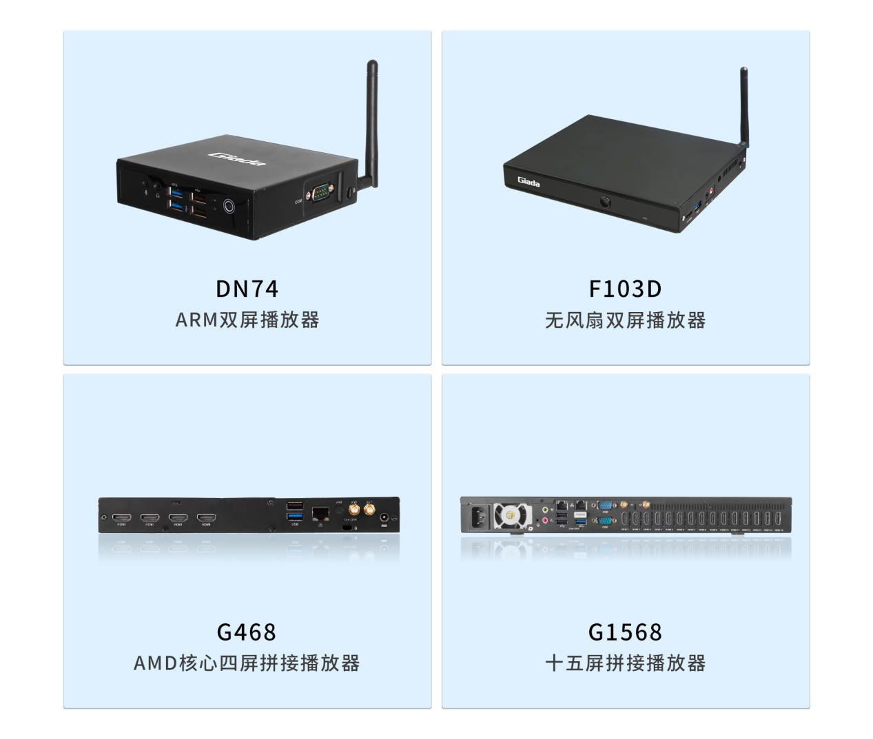 面对需求多样的市场环境,除星空电竞G330六屏拼接播放器外,星空电竞科技相继推出了G468四屏拼接播放器、G968九屏拼接播放器、G1568十五屏拼接播放器等多平台、多规格产品,均能够与星空电竞GDSM商显系统平台完美适配,为商家的实际需要,供应选型完整的家族式产品。