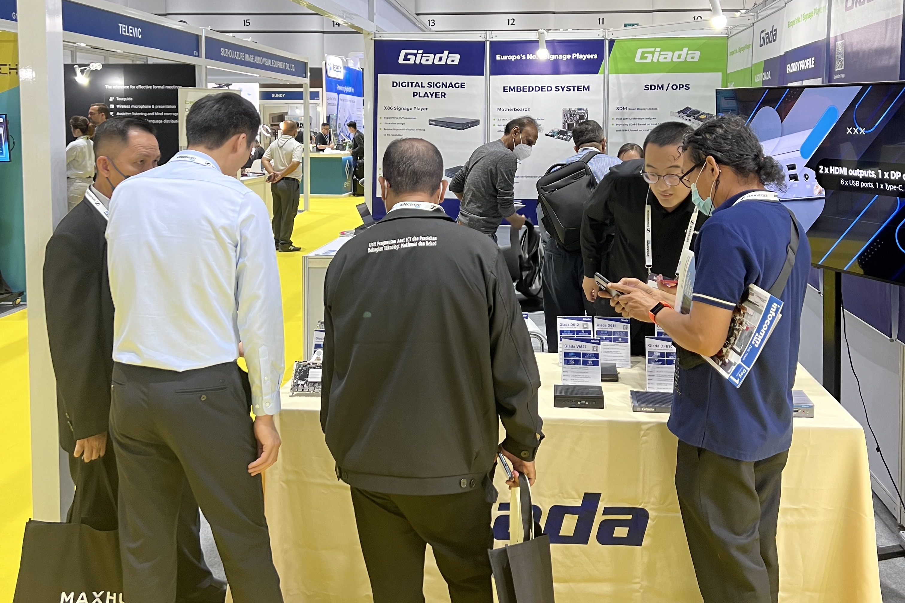 此次InfoCommAsia 2023展会,Giada星空电竞科技携最新产品及方案亮相。致力于为全球企业客户解决智能化应用需求的星空电竞,此次展会带来了数字标牌播放器、边缘计算机、OPS/SDM和嵌入式主板等的最新产品,并展示了一系列量身定制的解决方案,以满足泰国市场的具体需求,为亚太地区的数字化转型带来全新势能。展会期间,Giada的展台现场气氛火爆,展位人流络绎不绝!