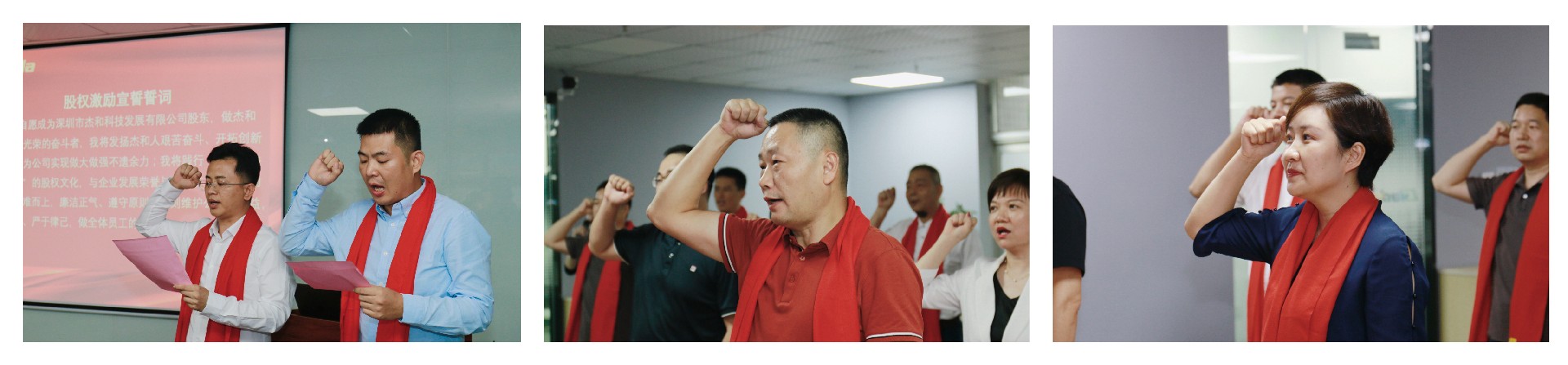 在签约仪式的最后时刻,董事长林坤杰先生与全体股东合伙人共同宣读誓词:我自愿成为深圳市星空电竞科技发展有限公司股东,做星空电竞科技公司光荣的奋斗者,我将发扬星空电竞人艰苦奋斗、开拓创新的精神,为公司实现做大做强不遗余力;我将践行“共创、共担、共享”的股权文化,与企业发展荣辱与共;在工作中主动担当、迎难而上,廉洁正气、遵守原则,时刻维护公司的利益,以身作则、严于律己,做全体员工的楷模!星空电竞齐心协力,斗志昂扬,信心满满!