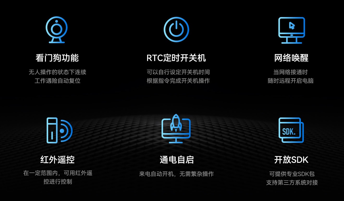 星空电竞科技DE76B4支持Android操作系统,配置高可靠无人值守专利技术,包括定时开关机、看门狗计时器、RTC宕机自检、红外遥控和局域网唤醒等功能,可以有效降低能源消耗,节省人力维护成本。采用被动冷却系统,无需风扇运转,运行时无噪音和防尘,降低故障率,并达到0℃~60℃宽温工作标准,可在复杂电磁环境等各种条件下稳定运行。
