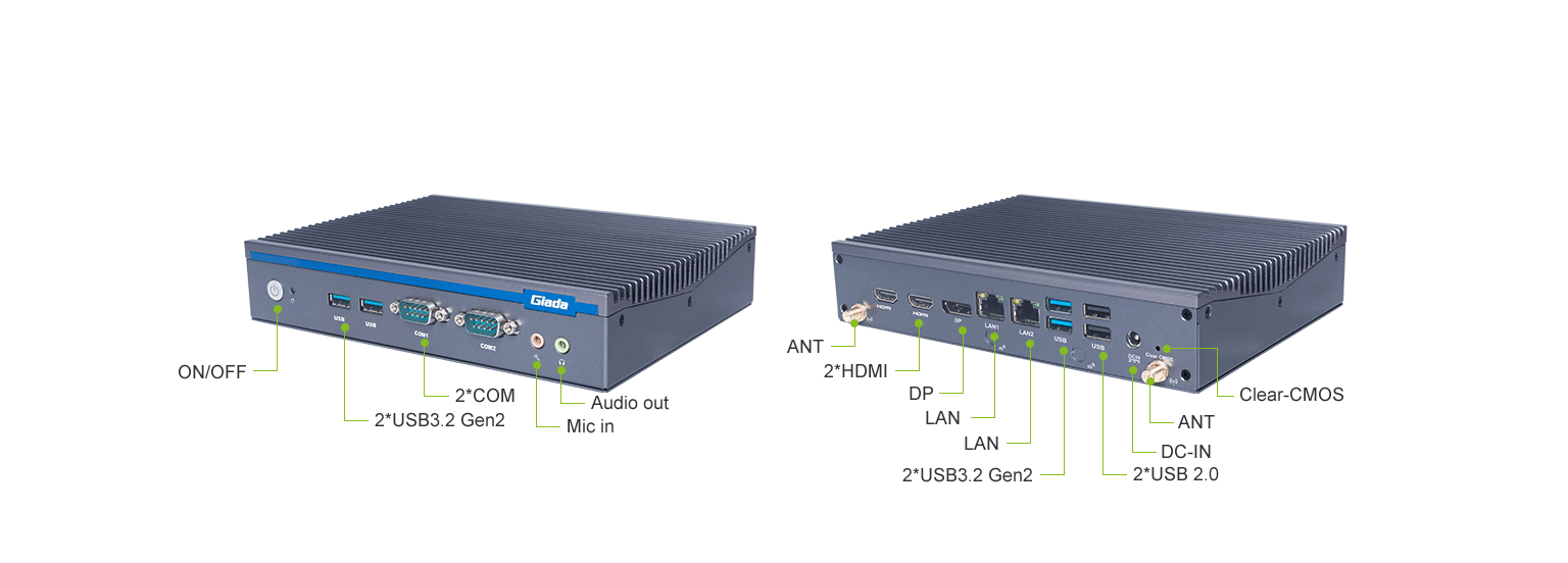 星空电竞科技AE613支持Windows 11 (64bit) /Linux Ubuntu (64bit)系统,双千兆自适应RJ45网口,4 x USB3.1 (10 Gbps),2 x USB2.0,1 x RS232,,1 x RS232/422/485,1 x MIC-IN,1 x AUDIO-OUT,丰富的I/O功能接口,实现更多功能扩展。