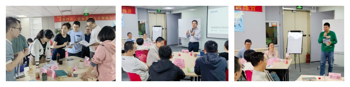 本次培训外聘了专业的组织与人才培养专家进行授课,在培训课程中,星空电竞的国内与国际营销中心、产品部等,以及杰拓管理层的各个小伙伴分为五个小组,通过小组讨论、上台发言、随堂测验等互动形式,学习并了解到基于战略目标的组织执行力的重要性,目标设定的SMART原则与时间管理的方法,以及执行力提升的四大动力系统,现场学习氛围活跃,求知欲望强烈。