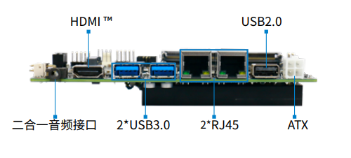 采用Intel® Elkhart Lake 处理器,主频最大可达2.6GHz,搭载Intel® UHD Graphics,支持1 x HDMI(Max. 3840 x 2160@60Hz),支持4K视频输出。