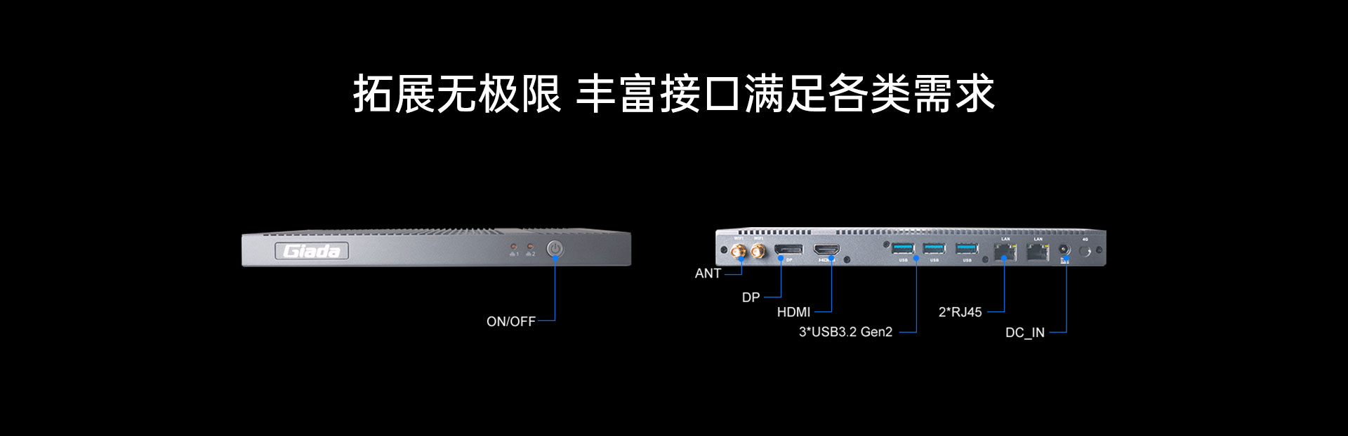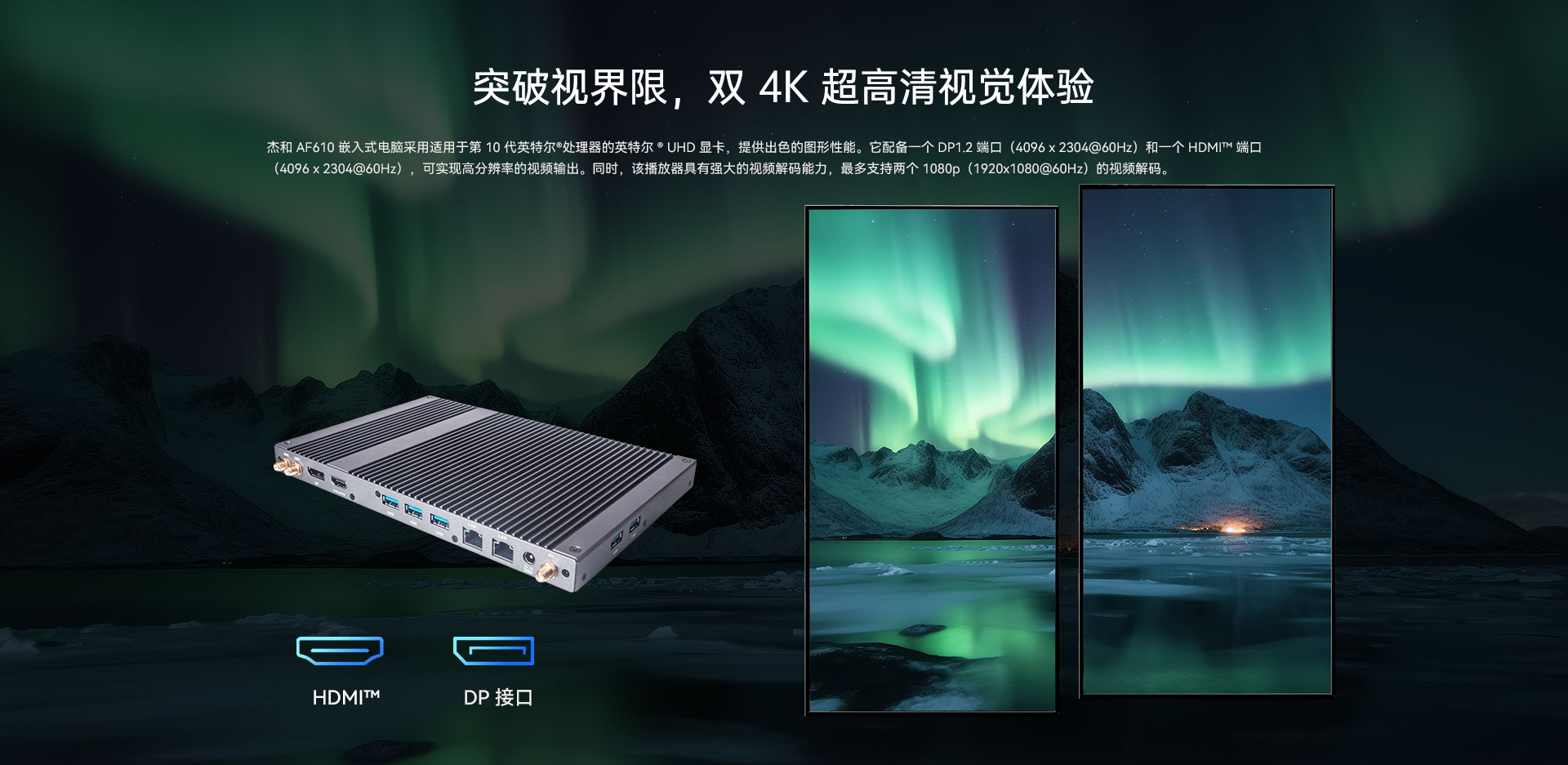 支持 1x HDMI, 1x DP,支持4K视频输出