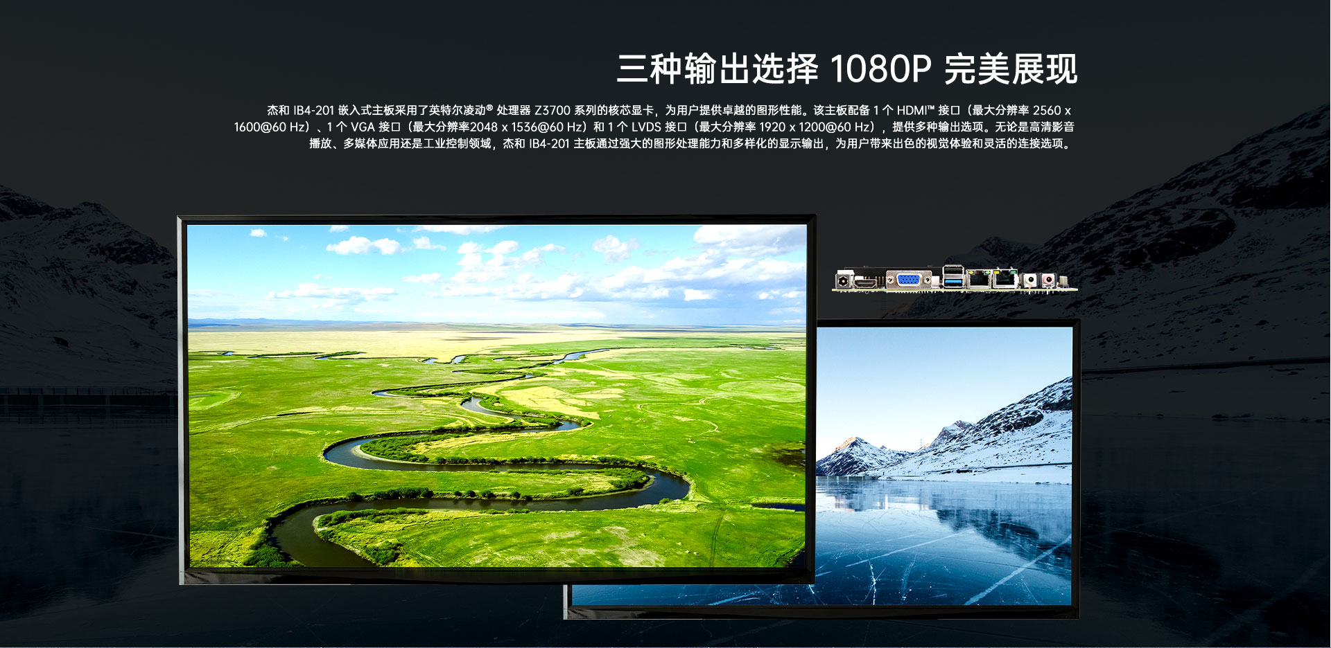 提供1x LVDS +1x HDMI+1x VGA 三视频接口输出
