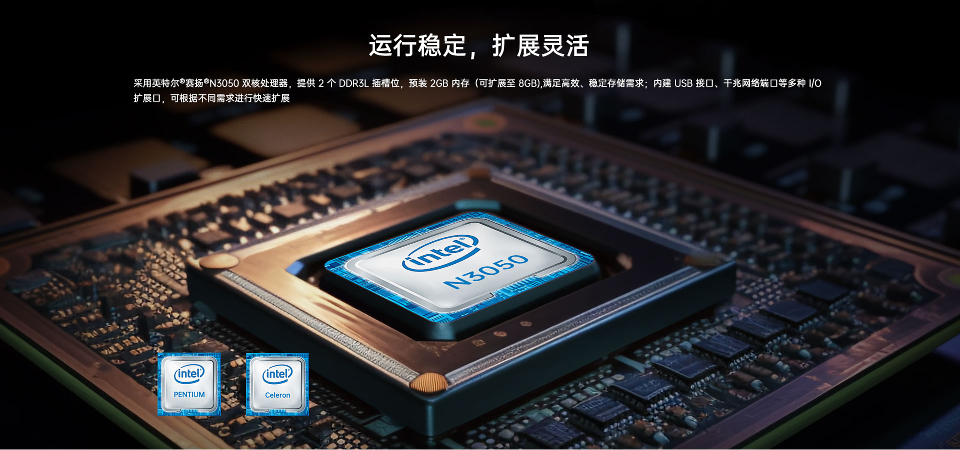 提供2个DDR3L插槽 预装2G内存